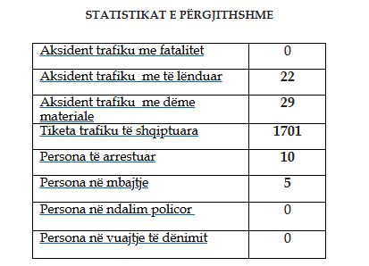 Kështu u bë e ditur në raportin e Policisë, ku thuhet se 22 prej tyre kanë qenë me të lënduar e 29 aksidente të tjera me dëme materiale.