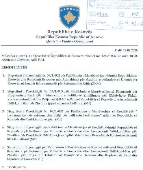 Në këtë mbledhje pritet të bëhet shqyrtimi i disa projektligjeve që kanë të bëjnë me marrëveshjet ndërkombëtare.