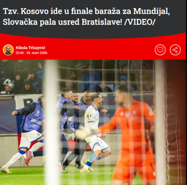 Kombëtarja e Kosovës po vazhdon të shkruajë historinë në futboll. “Dardanët” kanë arritur të fitojnë ndeshjen gjysmëfinale të play-offit për Kupën e Botës. Kosova fitoi 3:4 në udhëtim ndaj Sllovakisë, duke e prekur finalen e Botërorit dhe duke qenë një hap larg kualifikimit historik në një event të tillë. E nëpër mediat serbe tashmë ka…