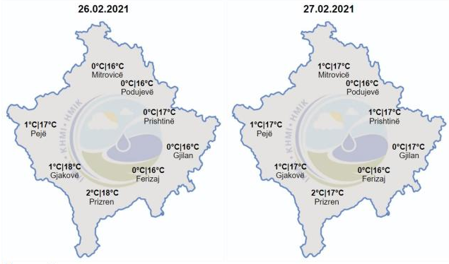 Mot me diell e vranësira edhe në dy ditët e ardhshme Instituti Meteorologjik i Kosovës, njofton se në dy ditët e ardhshme në vendin tonë do të mbajë mot me diell dhe vranësira të shpërndara. Lajme 25/02/2021 20:08 Në mëngjes vende-vende parashihet të ketë mjegull dhe ngrica të dobëta. Temperaturat minimale do të lëvizin ndërmjet 0-2 gradë Celsius, ndërsa maksimalet e ditës parashihen të lëvizin ndërmjet 15-18 gradë Celsius. Do të fryjë erë drejtimesh të ndryshme e lehtë deri mesatare. Artikuj të ngjashëm April 23, 2026 Xhaxhai i Fatos Gecit: Ky është deputeti i VV-së që ia... April 22, 2026 Gruda kritikon Kurtin: Procesi për zgjedhjen e Presidentit “farsë” dhe i... April 22, 2026 Të shtëna armësh në drejtim të një veture në Laç, të... April 22, 2026 Media suedeze për Naim Murselin: Suedezi u dënua për jetë si... April 22, 2026 Erdogani pret Rutten, diskutojnë përgatitjet për samitin e Ankarasë April 22, 2026 Skandali i fondeve bujqësore: Parlamenti i Greqisë heq imunitetin për 13... Lajme të fundit Xhaxhai i Fatos Gecit: Ky është deputeti i... Gruda kritikon Kurtin: Procesi për zgjedhjen e Presidentit... Të shtëna armësh në drejtim të një veture... Media suedeze për Naim Murselin: Suedezi u dënua...