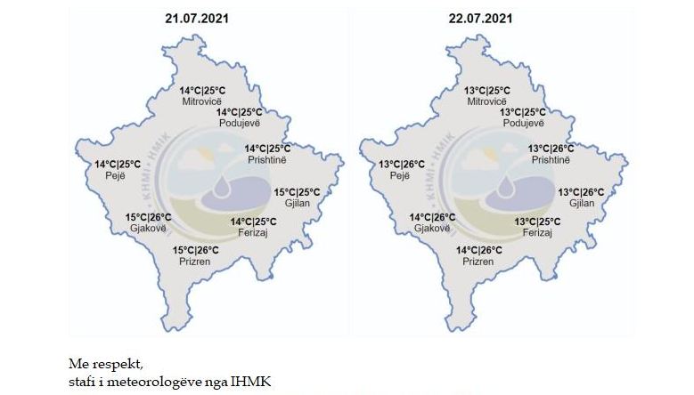 Instituti Hidrometeorologjik i Kosovës ka publikuar parashikimin e motit për dy ditët e ardhshme.