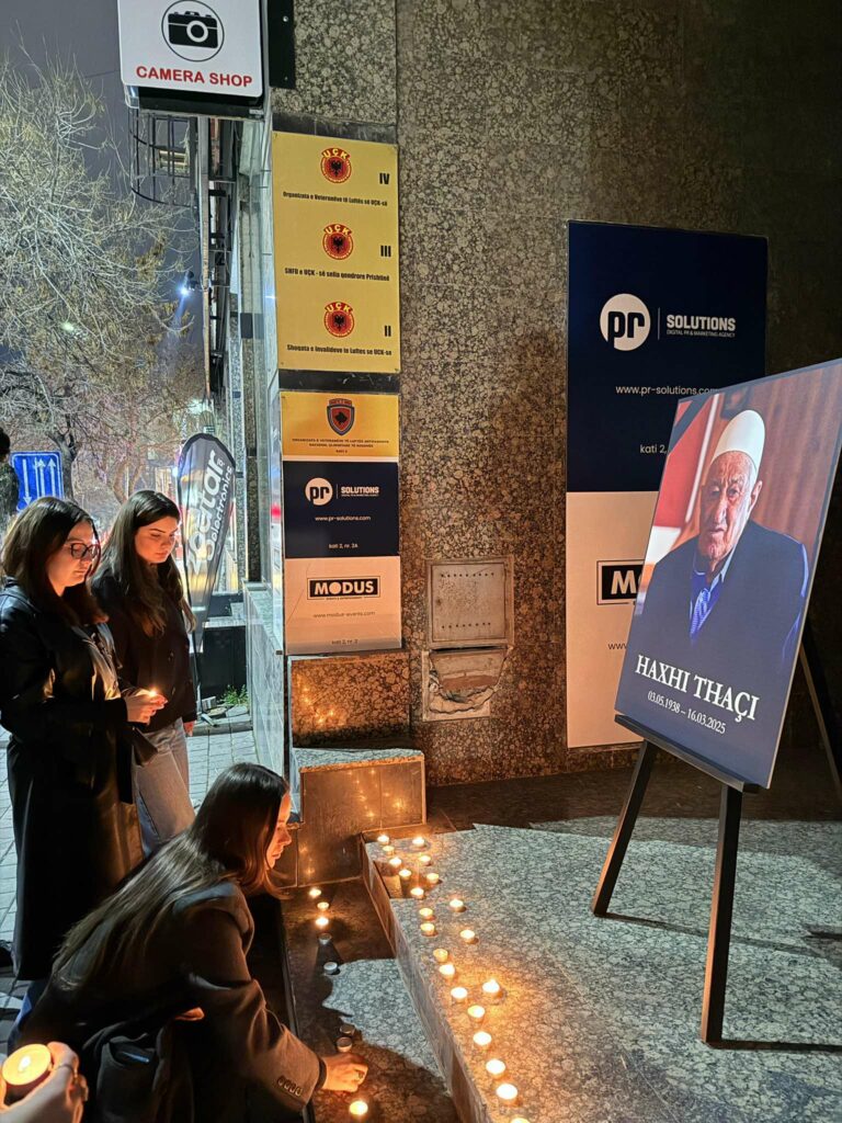 Për të nderuar figurën e Haxhi Thaçit, babait të presidentit Hashim Thaçi, të rinjtë në Prishtinë kanë ndezur qirinjë pranë zyrës së OVL UÇK-së.