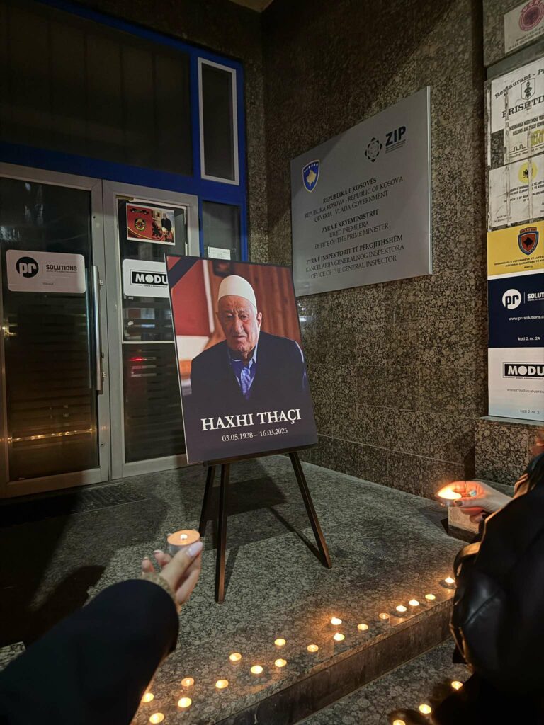 Për të nderuar figurën e Haxhi Thaçit, babait të presidentit Hashim Thaçi, të rinjtë në Prishtinë kanë ndezur qirinjë pranë zyrës së OVL UÇK-së. Krahas qirinjve kanë vendosur edhe fotografinë e Haxhi Thaçit. Haxhi Thaçi vdiq mbrëmë në moshën 87-vjeç në QKUK teksa po trajtohej nga një sëmundje.