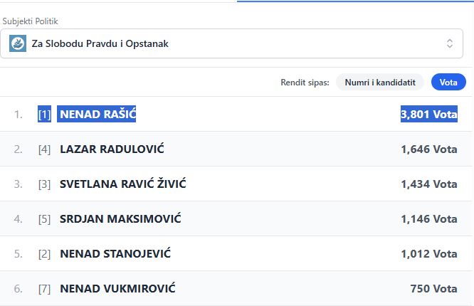 Politikani serb Nenad Rashiq, i cili udhëheq me partinë për Liri Drejtësi dhe Mbijetesë e ka siguruar një ulëse në Kuvendin e Kosovës. Kështu konfirmojnë rezultatet e publikuara nga Komisioni Qendror i Zgjedhjeve. Sipas KQZ-së, Rashiq ka arritur t’i marrë 3 mijë e 828 vota.