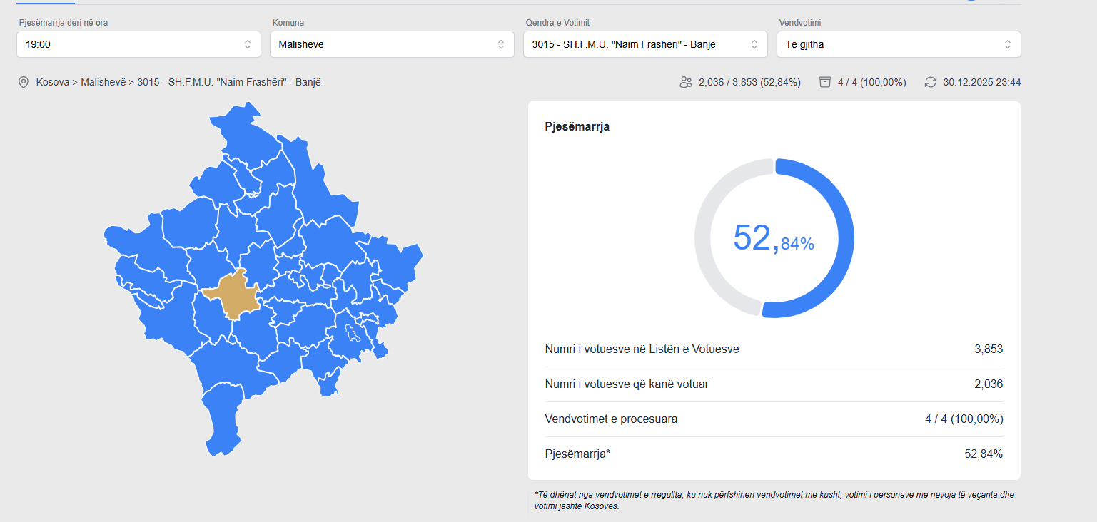 Në këtë fshat nga 3 mijë e 853 qytetarë me të drejtë vote, kanë marrë pjesë në zgjedhje 2 mijë e 36 qytetarë