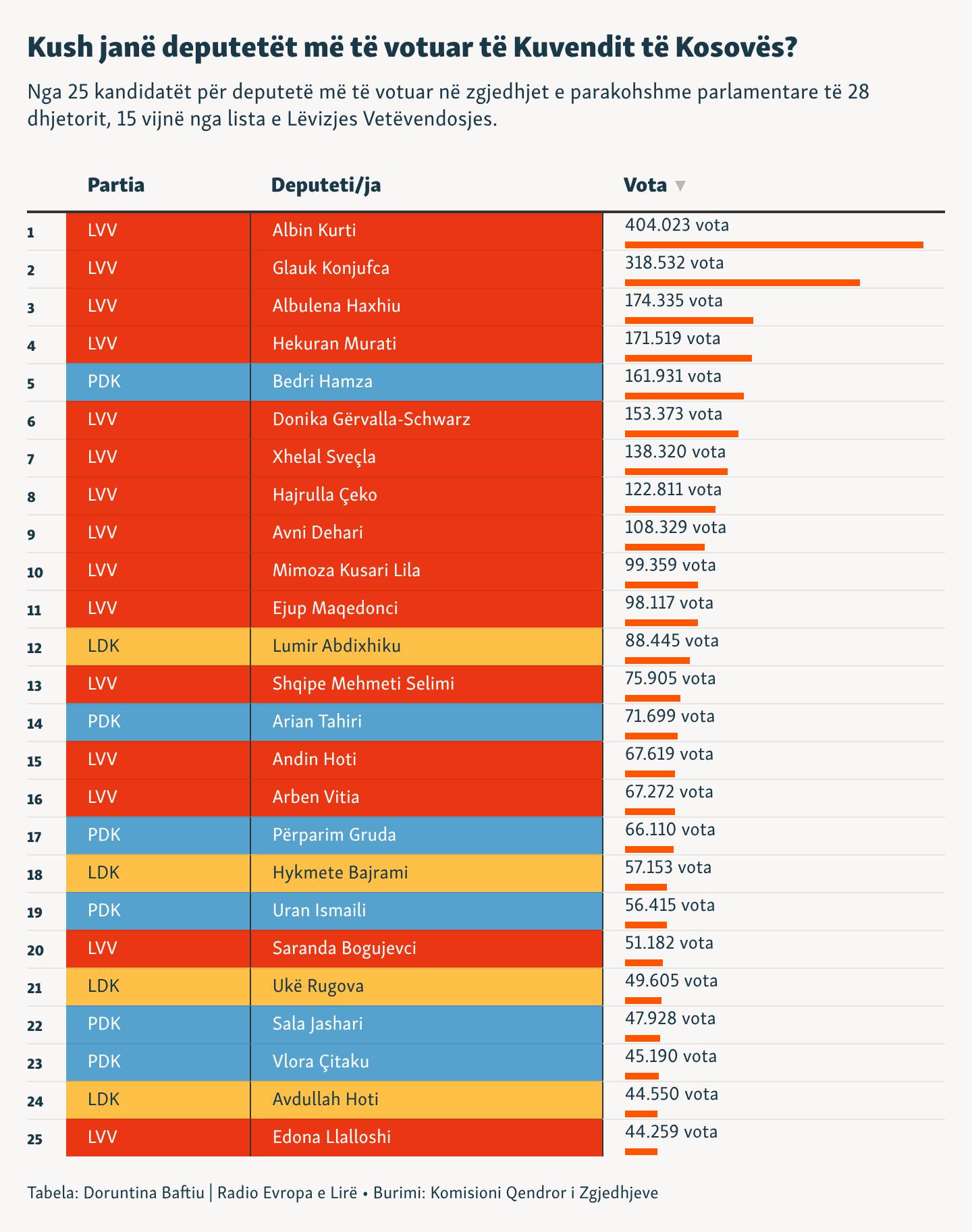 Radio Evropa e Lirë ka bërë një inforgrafikë të 25 kandidatëve më të votuar në Kosovë.