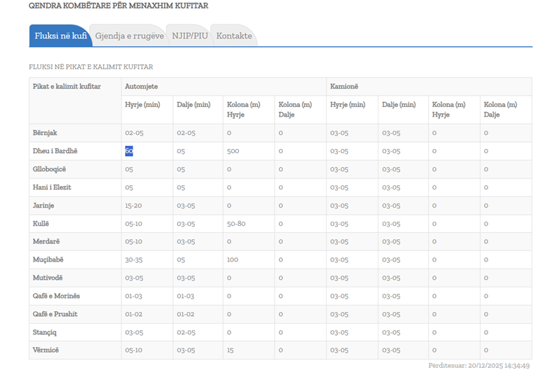 Ka filluar fluksi i ardhjes së mërgimtarëve në Kosovë për festat e fundvitit. Në përditësimin e fundit të Qendrës Kombëtare për Menaxhim Kufitar, pritjet për të hyrë te pikëkalimi kufitar Dheu i Bardhë shkojnë deri në një orë. Ndërkaq, në Merdarë nuk ka fluks me pritje nga 5-10 minuta.