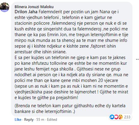 Pas këtij komenti, është lajmëruar nëna e cila ka qenë cak i vjedhjes.