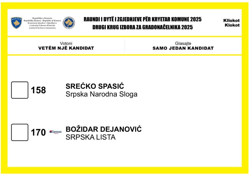 Nga raundi i parë në Kllokot, Bozhidar Dejanoviq i Listës Serbe fitoi 893 vota ose 41.38%, ndërsa Sreçko Spasiç mori 674 vota ose 31.23%. /Lajmi.net/