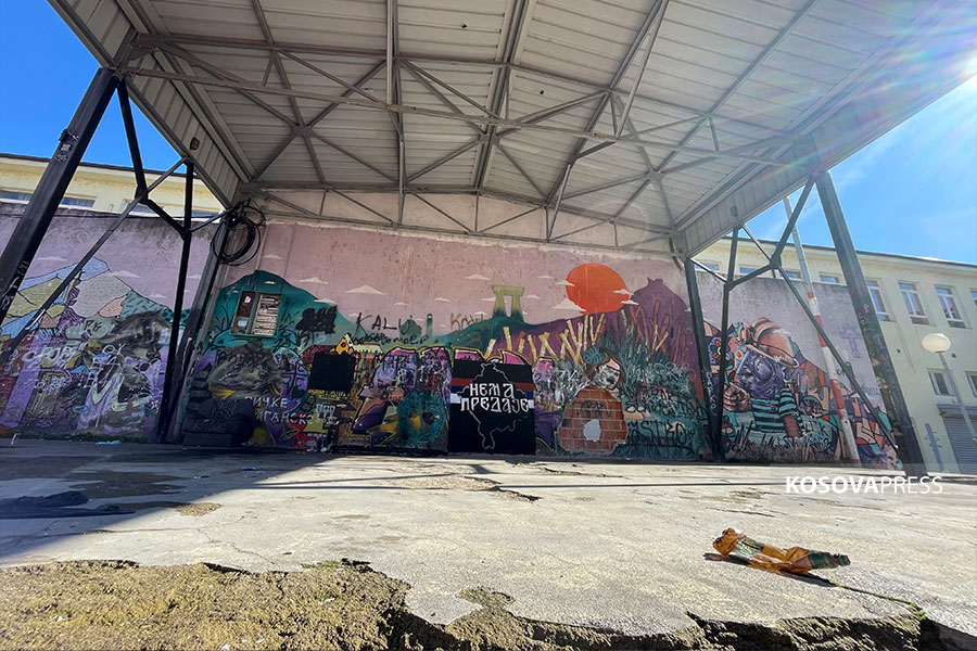 Sipas pamjeve të siguruara nga KosovaPress, në muret e oborrit të shkollës teknike shihen mbishkrime si “Rusët dhe serbët, vëllezër përgjithmonë”, “nuk ka dorëzim” dhe “Kosova është Serbi”.