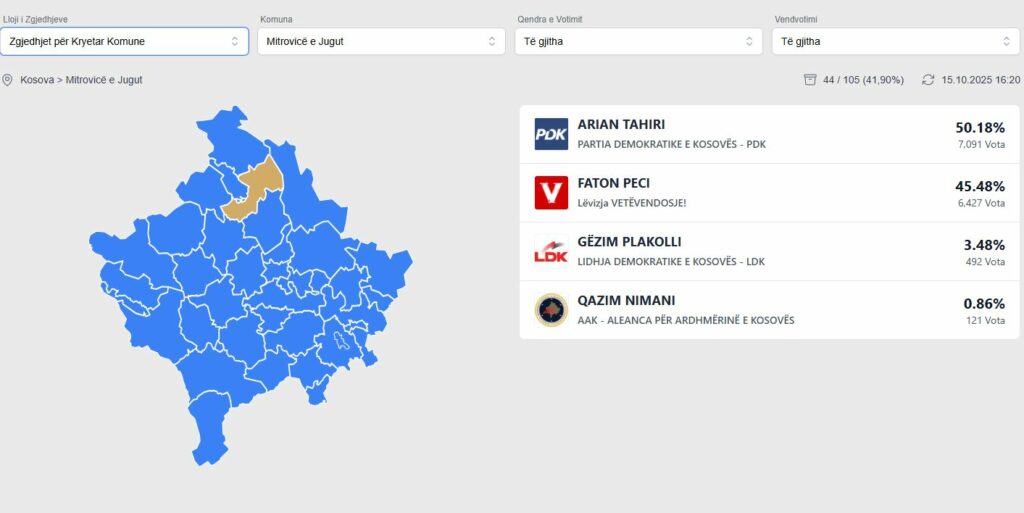 Numërohen 44 kuti: PDK prin për kryetar dhe asamble në Mitrovicë, lë prapa Faton Pecin