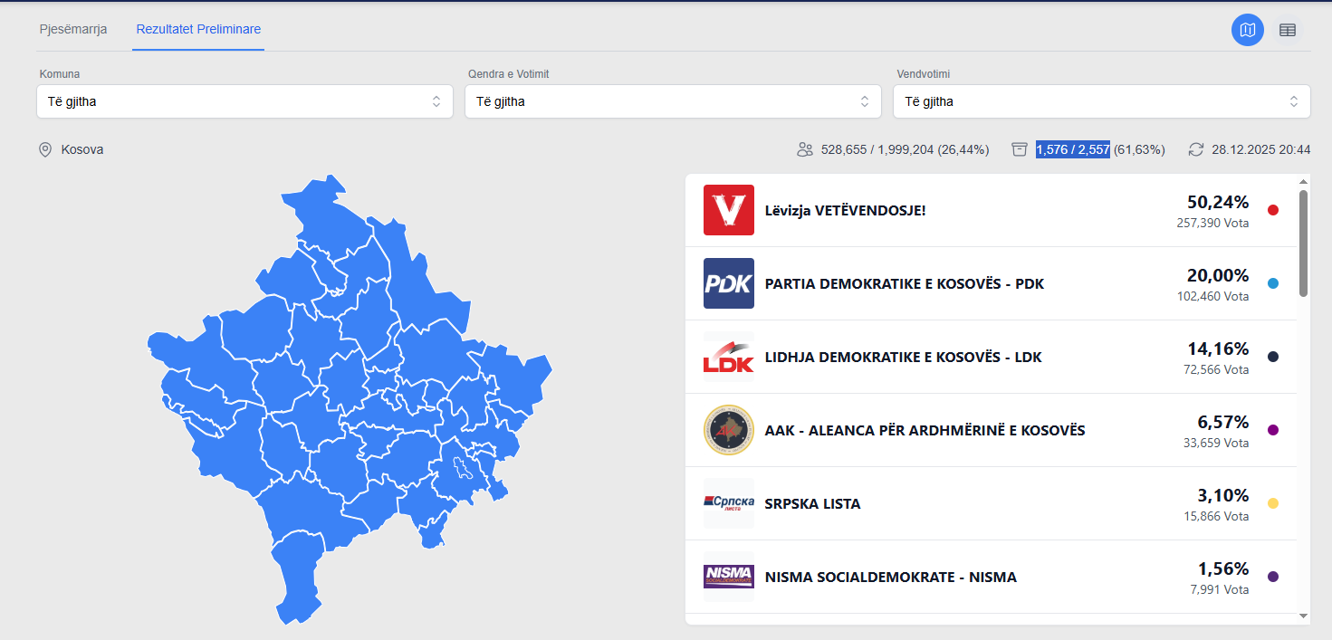 Numërohen mbi 61% të votave, VV kalon 50%-shin