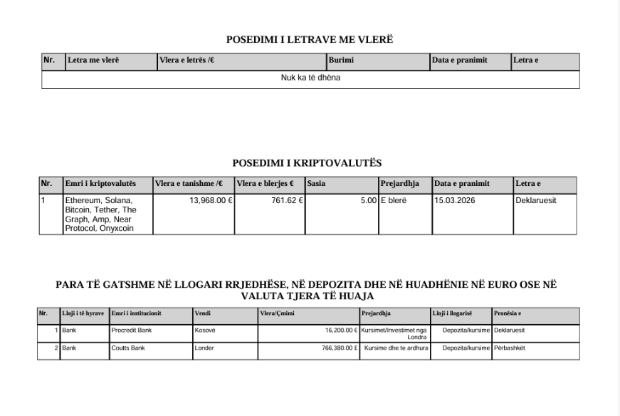 Ai ka deklaruar 13 mijë e 968 euro vlerë në kriptovaluta të ndryshme.