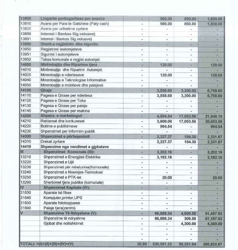 Kurse te kategoria “Shpenzime të ndryshme”, kjo partia ka deklaruar mbi 91 mijë euro në total, kurse nga to, për gjoba dhe ndëshkime ka paguar 4,300 euro.