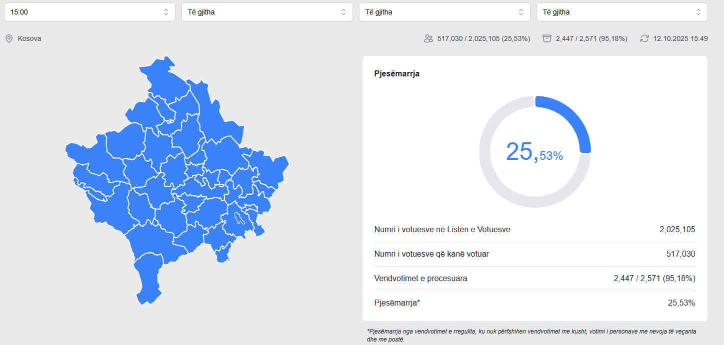 KQZ në përditësimin e fundit ka bërë të ditur se deri më tani kanë marr pjesë 25,30 % e qytetarëve të vendit.
