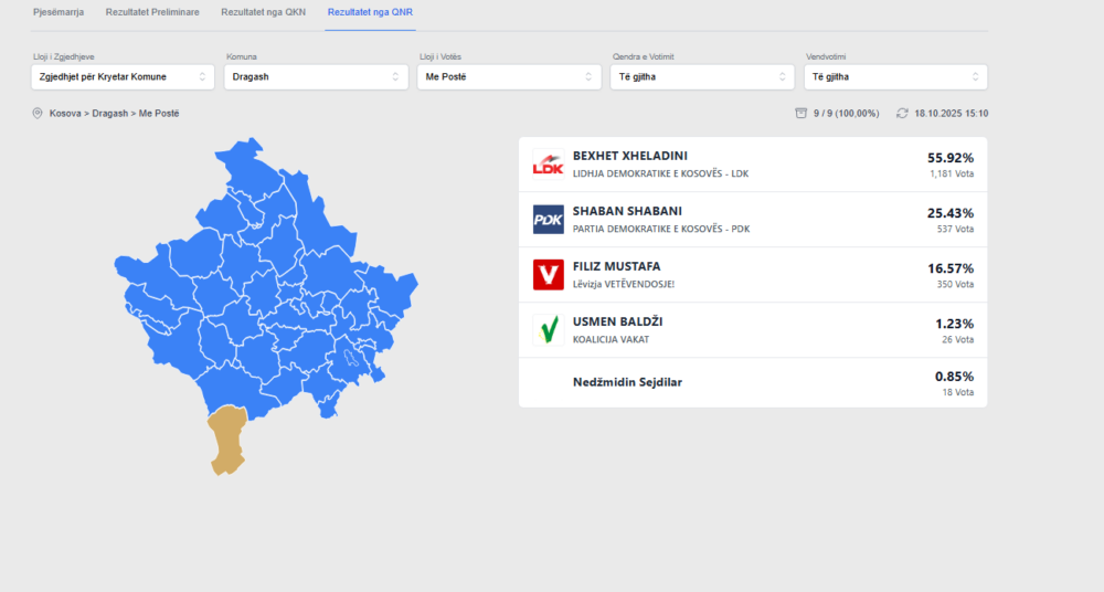 Komisioni Qendror i Zgjedhjeve ka përfunduar tashmë numërimin edhe të votave me postë jashtë Kosovës për disa komuna. Një nga këto komuna është ajo e Dragashit. Nga rezultatet, kjo komunë do të shkojë në balotazh, pasi që asnjëri nga kandidatët s’ka arritur të marrë votat e mjaftueshme për t’u shpallur fitues në raundin e parë.…