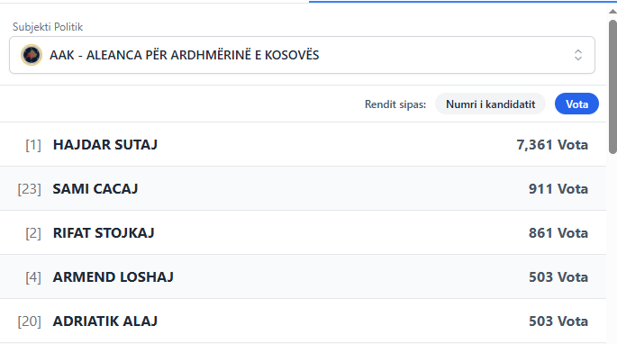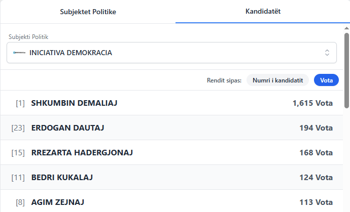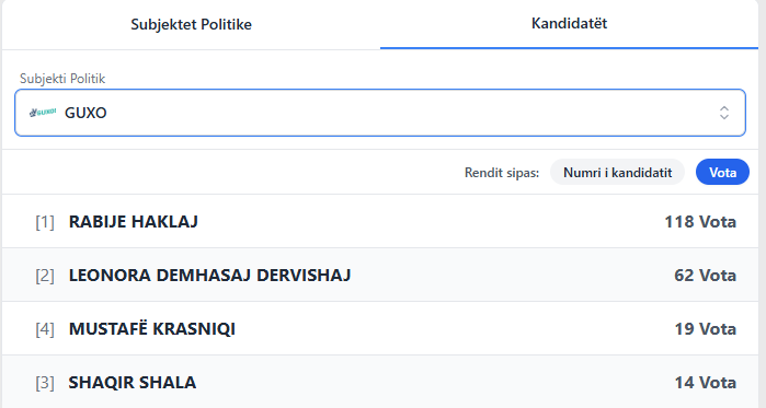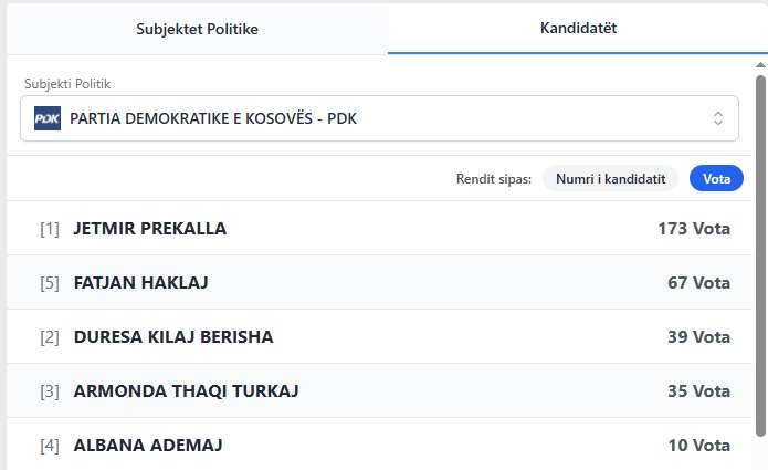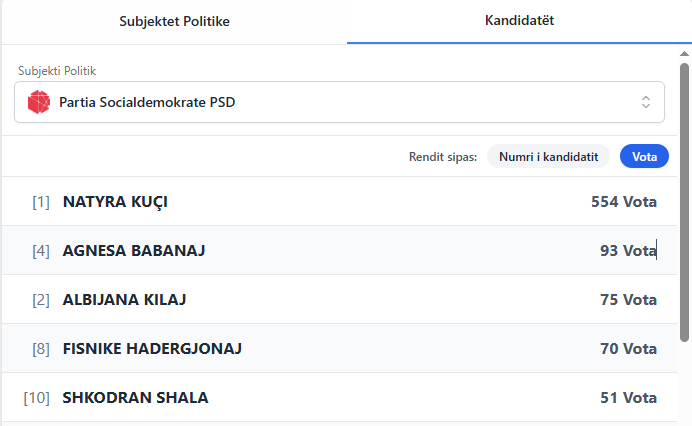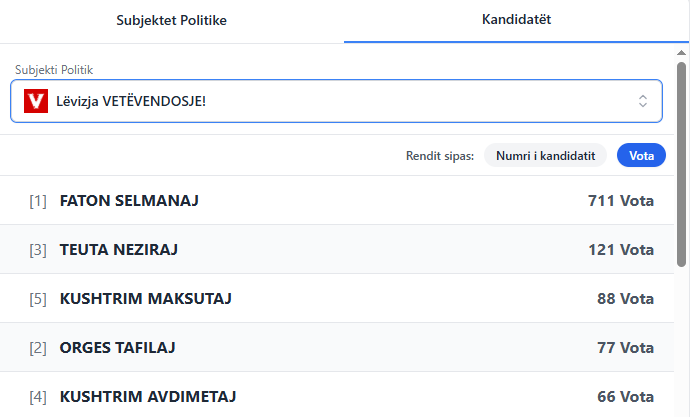 Këta janë pesë kandidatët më të votuar nga secila parti: