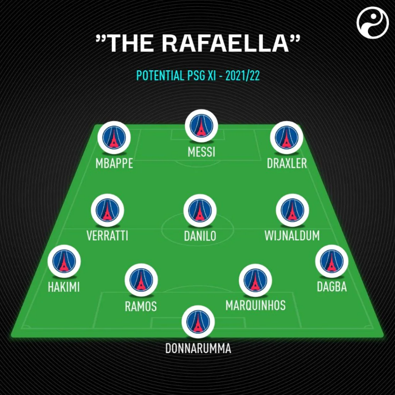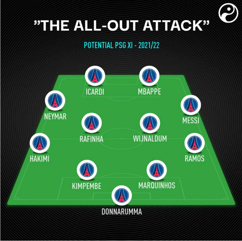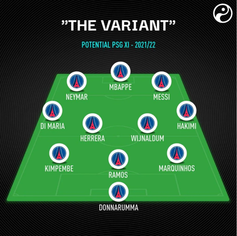 3.Donnarumma; Marquinhos, Ramos, Kimpembe; Hakimi, Wijnaldum, Herrera, Di Maria; Messi, Mbappe, Neymar.