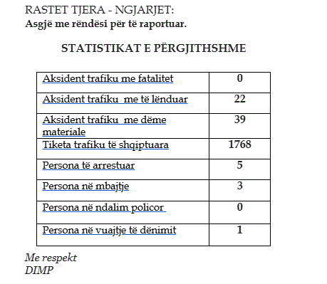 Në 24 orët e fundit janë raportuar 39 aksidente trafiku me dëme materiale, kurse 22 aksidente trafiku kanë përfunduar me të lënduar.