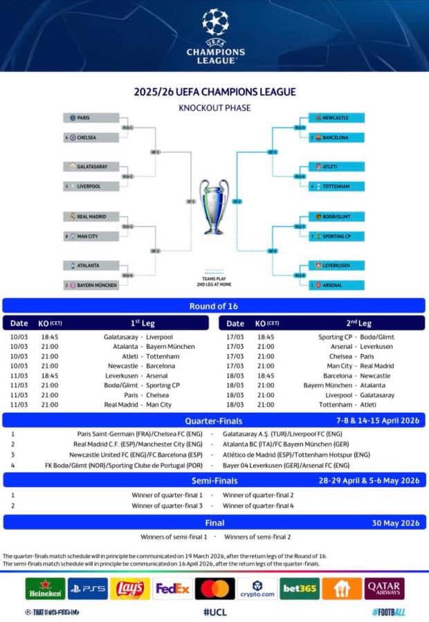 Pas shortit, UEFA ka publikuar orarin e plotë të ndeshjeve të 1/8 së finales.
