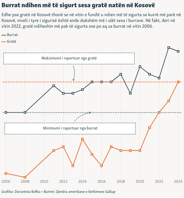 Sepse, ajo tregon vetëm mesataren në Kosovë. Rel ka kërkuar nga qendra Gallup të dhëna të ndara për gjini dhe ato tregojnë se dallimi mes burrave dhe grave është i dukshëm sa i përket ndjenjës së sigurisë që kanë.