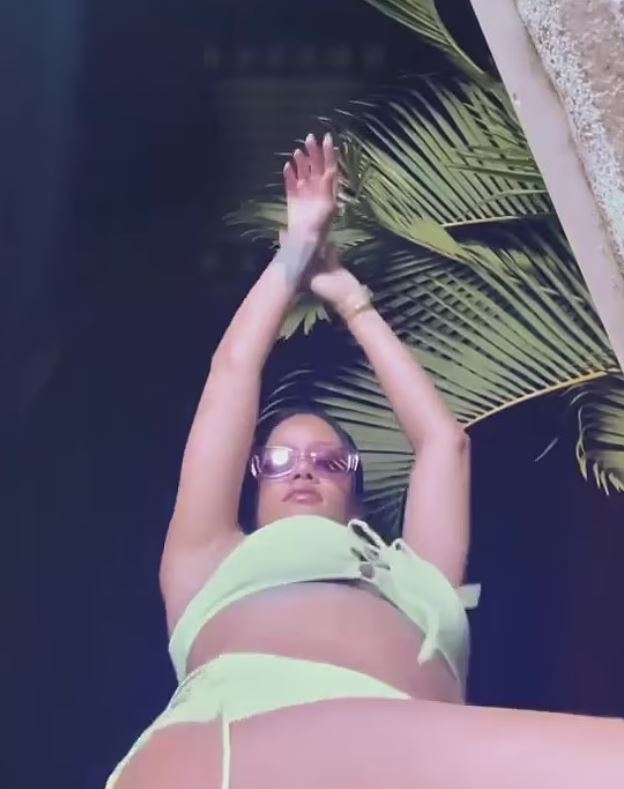Duke ngarkuar videon në Instagram, Rihanna u pa duke ecur nëpër një shkallë gjatë natës, në sfondin e palmave, në lëvizjen e saj flirtuese.