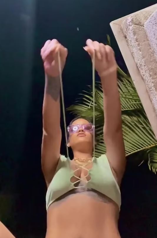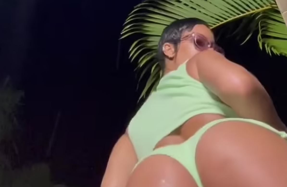 Këngëtarja dhe sipërmarrësja 33 vjeç, pozoi me një palë të brendshme me ngjyrë të gjelbër teksa bënte lëvizje provokuese para kamerës.