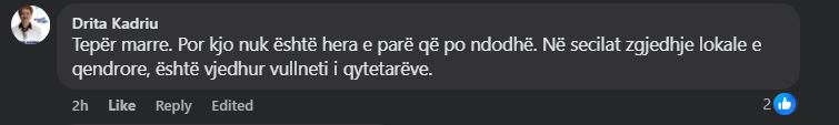 Në postimin e saj kanë komentuar edhe bashkëpartiak të tjerë duke e cilësuar se është vjedhur vullneti i qytetarëve.