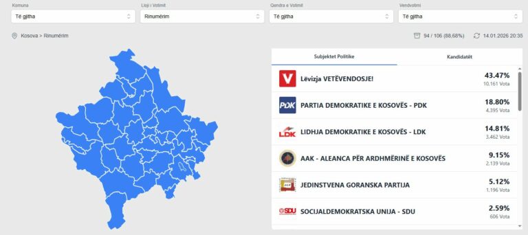 Rinumërohen gati 99% e 108 vendvotimeve, këto janë rezultatet