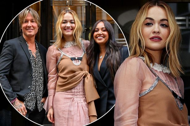 Në fotografitë që po qarkullojnë në rrjete sociale, Rita shihet e veshur me një fustan blu, i cili ia theksonte linjat trupore.