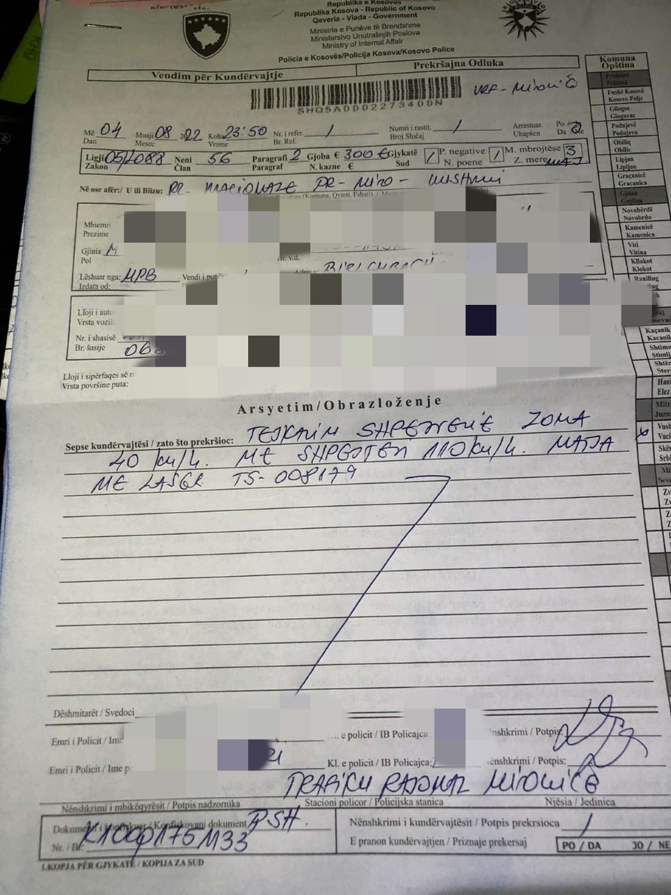 Në orët e mesditës së sotme, Njësia Rajonale e Trafikut në kuadër të Drejtorisë Rajonale të Policisë në Mitrovicën e Jugut, gjatë kontrollit të trafikut rrugor në rrugën nacionale Mitrovicë-Prishtinë përkatësisht në segmentin rrugor në Vushtrri, gjatë matjes së shpejtësisë me radar ka identifikuar një veturë e cila ishte duke zhvilluar shpejtësi prej 110 km/h në zonën urbane ku kufizimi i shpejtësisë është 40 km/h.