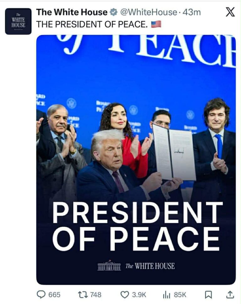 Faqja e Shtëpisë së Bardhë në rrjetin social X ka ndarë një fotografi të presidentit amerikan Donald Trump, i rrethuar me liderë të tjerë. Menjëherë prapa tij shihet edhe homologia e tij nga Kosova, Vjosa Osmani, e cila ishte ndër nënshkrueset e Kartës së Bordit të Paqes. “Besoj fuqishëm në lidershipin e presidentit Trump dhe…