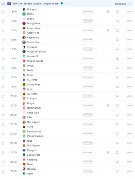 Sonte në aksion Liga e Europës, 18 ndeshje në program