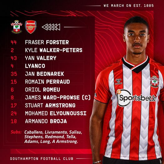 Janë publikuar formacionet zyrtare për ndeshjen Southampton – Arsenal, vlefshme për xhiron e 34 të Premier League.