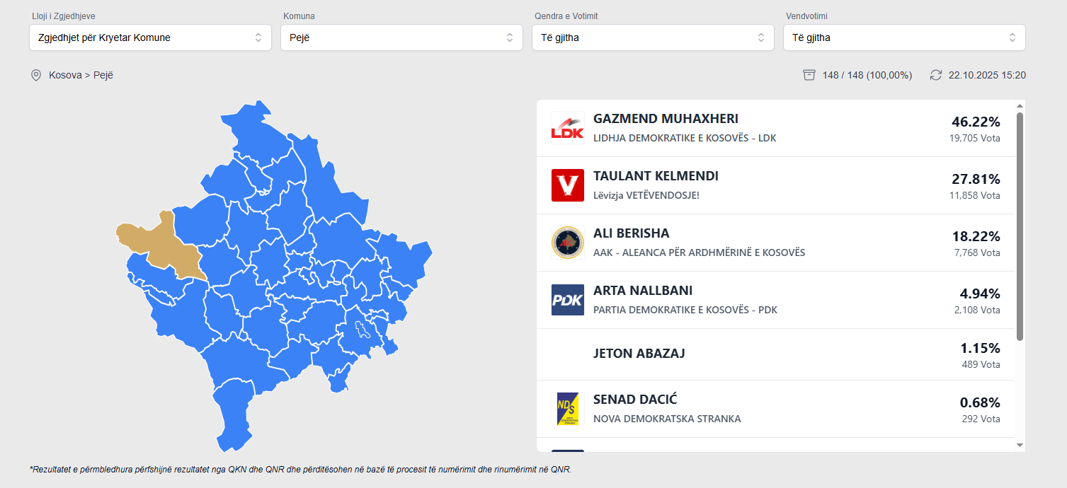 Bazuar në këto rezultate, Komuna e Pejës është një nga 18 komunat në vend që kanë shkuar në balotazh.