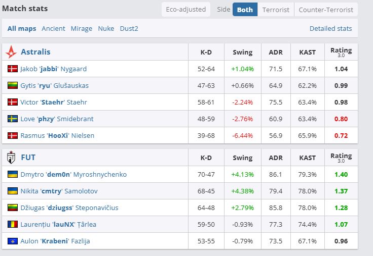 Në finale “FUT” fituan kundër ekipit të njohur “Astralis” 3:1 në “maps”. Nga ky turne, ekipi ‘FUT’ fiton 200 mijë dollarë.