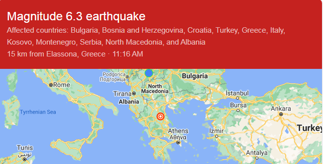 Tërmeti ndodhi në orën 11:16 dhe epiqendrën e pati 24 kilometra në veriperëndim të qytetit Larisa.