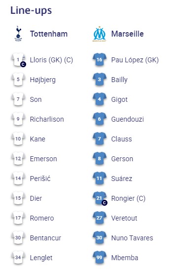 Tottenham – Marseille, formacionet zyrtare
