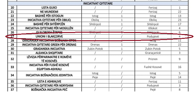 Bëhet fjalë për Unionin e Blakçorve, e cila garon me katër kandidatë duke synuar Asamblenë komunale në Podujevë.
