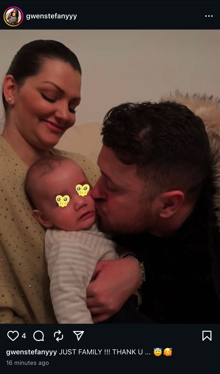 Ajo ka publikuar një foto ku Labinoti shfaqet duke puthur foshnjën, shoqëruar me përshkrimin:
