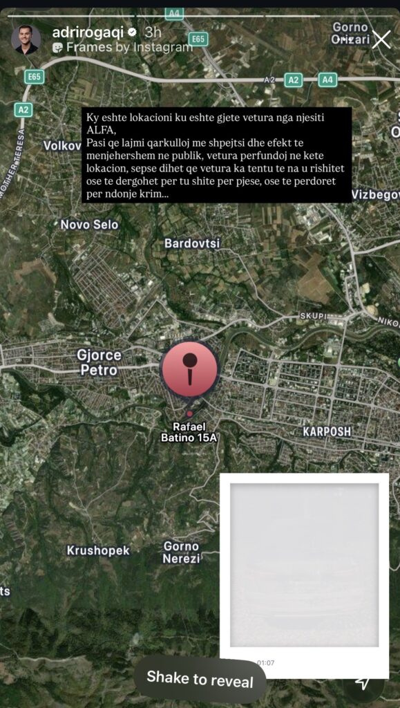 Një situatë e rëndë dhe plot ankth ka shoqëruar 24 orët e fundit çiftin e njohur Adri Rogaqi dhe Iliriana Sadriu, pasi vetura e tyre luksoze e tipit “Audi” ishte vjedhur parmbrëmë në Zhelinë. Sipas vetë çiftit, ekzistonte frika reale se automjeti mund të shitej për pjesë ose të përdorej për ndonjë aktivitet kriminal, gjë…