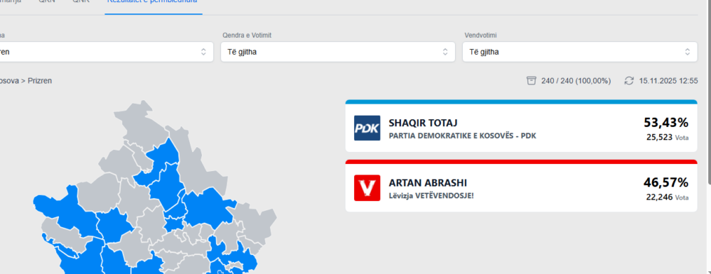 Megjithatë, pas përfshirjes së të gjitha votave, Totaj del fitues bindshëm, duke arritur mbi 25,000 vota, ndërsa Abrashi ka siguruar gjithsej 22,246 vota./Lajmi.net/