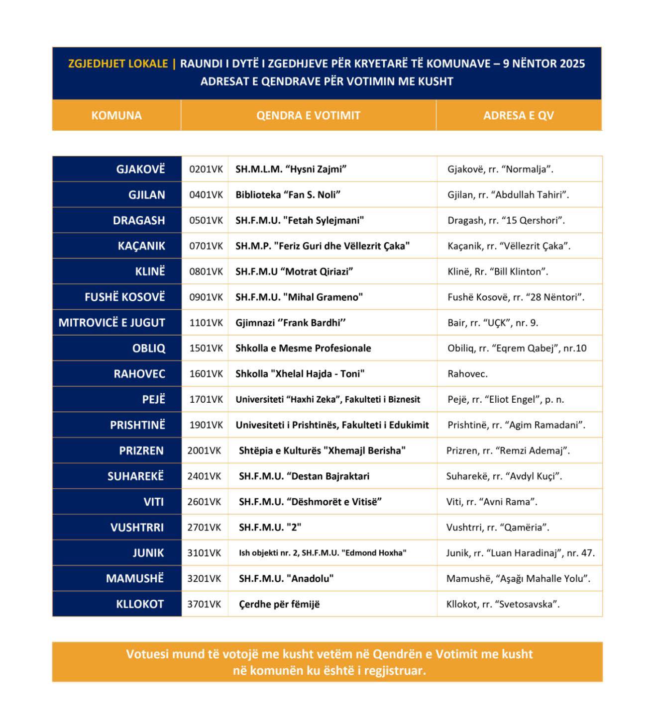 Komisioni Qendror i Zgjedhjeve ka njoftuar një ditë më parë se për të mundësuar votimin me kusht në balotazh, në çdo komunë, ku po mbahet rrethi i dytë, është caktuar nga një Qendër Votimi.