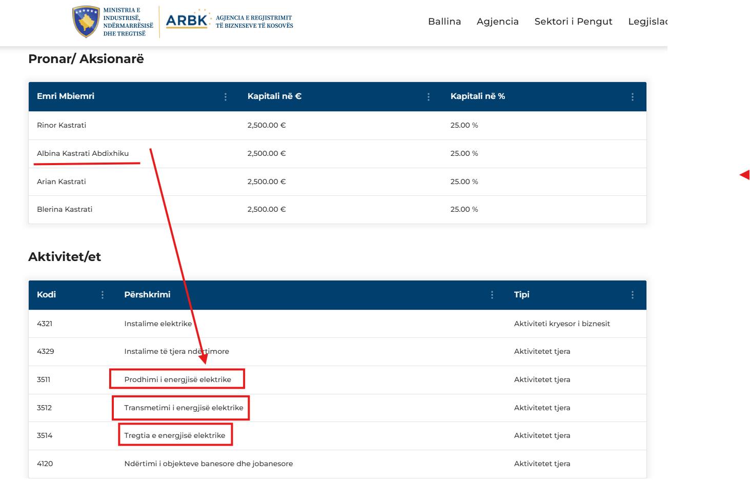 Zgjerohen përfitimet – Gruaja e Lumir Abdixhikut aksionare në biznes për prodhim e transmetim të energjisë elektrike