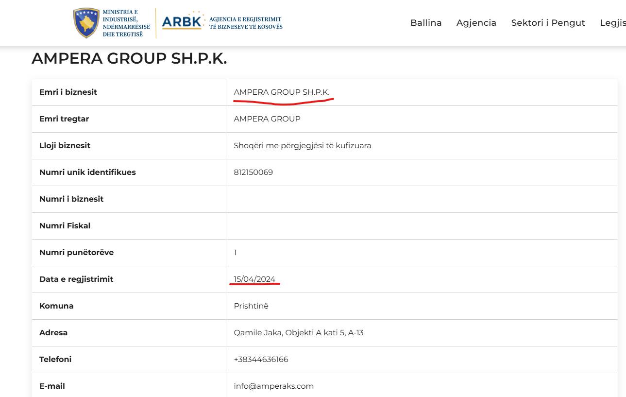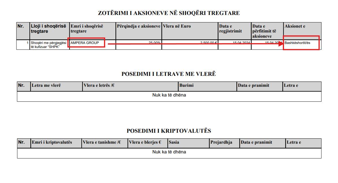 “AMPERA GROUP SH.P.K”, eshtë kompania ku Kastrati-Abdixhiku ka 25% të aksioneve.