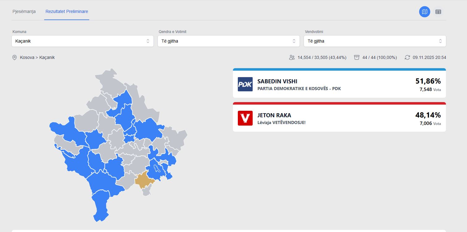 Zyrtare: PDK dhe Sabedin Vishi fitojnë në Kaçanik